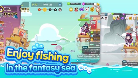 空闲钓鱼幻想之海官方版是一款非常有趣的游戏,玩家可以在游戏中与可爱的猫一咪一起航行在幻想的海洋中,欣赏美丽的海景,看着鱼儿游走,享受钓鱼的乐趣。