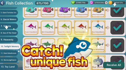 2、玩家可以将捕获的鱼添加到自己的水族箱中,并欣赏它们。