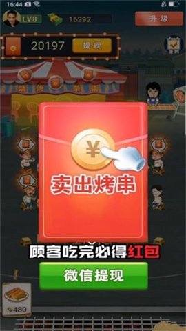 1、玩家可以通过完成订单来获得奖励,解锁更多的烧烤摊位也有红包奖励。