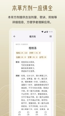 1、 岐黄小筑还提供了古法剂量、歌诀、煎制等详细信息,方便学者理解应用中医诊疗与保健。