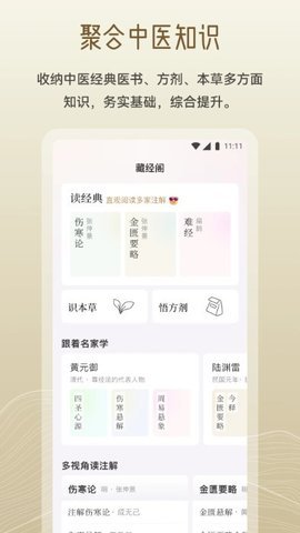 1、无论是通过阅读中医经典、本草和方剂,还是通过参与中医专业知识竞赛活动,用户都能够在岐黄小筑中丰富自己的知识储备。