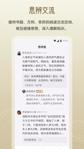 3、岐黄小筑还为用户提供了书籍、方剂和草药的阅读交流空间,用户可以在这里与其他学者相互碰撞思想,深入理解知识。