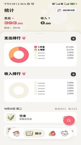 4、 喵咕记账不仅功能丰富,操作也非常简单,用户可以快速进行记账。