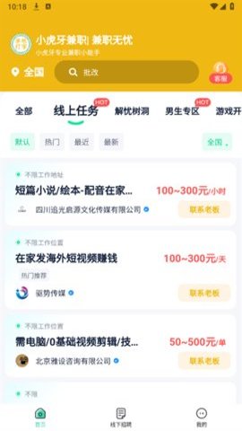 1、 小虎牙兼职的操作界面非常简洁明了,用户可以轻松地浏览兼职任务列表,并快速申请感兴趣的工作。