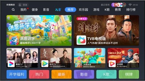 1、 在欢视应用商店中,用户可以找到海量的免费电视应用,包括电视直播、视频点播、教育益智、各种炫酷游戏等精品内容。