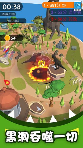 3、随着吸收的物品越来越多,黑洞也会不断成长,当比对手体积大时,你甚至可以直接吞噬对手。