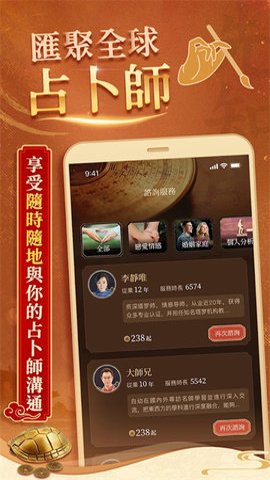 4、 除了占卜工具,先知命局还提供了与全球顾问交流的功能。