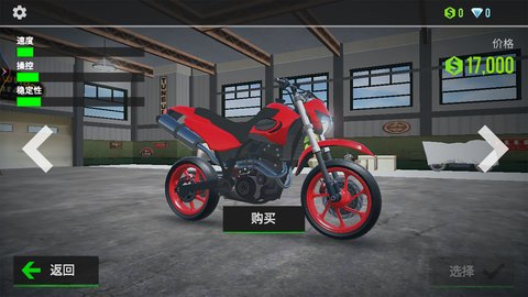 2、游戏提供了车库功能,玩家可以在车库中选择自己喜欢的摩托车,并对其进行升级和强化。
