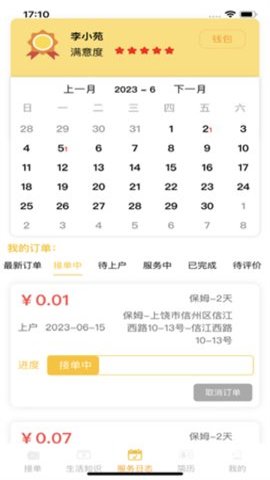 1、用户还可以通过app随时查看自己的订单和服务记录,方便管理和核对。