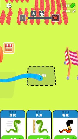 1、游戏的玩法非常简单,玩家只需要控制小蛇吞噬比自己小的对手,就能让自己的身体变得更长,速度更快。