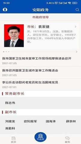 1、 安阳市政府网App是安阳市人民政府发布政务信息的新媒体平台,涵盖了要闻咨询、法规文件、解读、部门动态、公告公示等栏目。