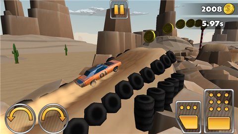 2、 进入游戏后,你需要点击左侧进行转向,右侧进行加减速,带着特技车在轨道上进行跳跃、循环和闯过障碍物。