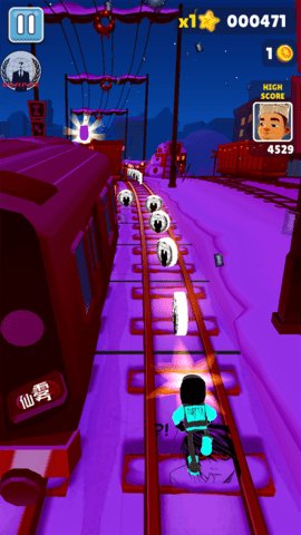4、 除了视觉上的变化,地铁跑酷仙雾定制版还拥有酷炫的动作特效和迷幻格纹的角色模型,这些元素让玩家在展开一场爽快的跑酷旅程。