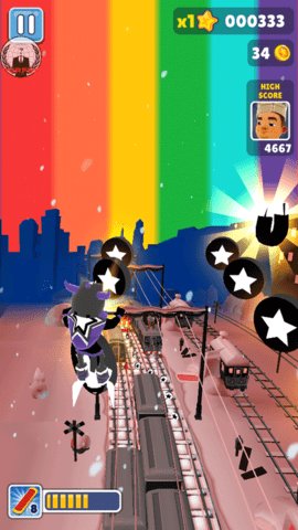 2、 地铁跑酷大蛇张冰焯版本还将天空变成了彩虹的颜色,给玩家带来了更加绚丽多彩的视觉享受。