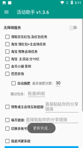 3、 淘宝双十一活动助手提供了多种实用的便利服务,可以帮助你轻松解决淘宝中的任务和活动。