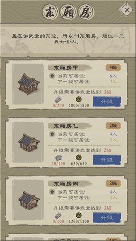 2、这个游戏采用了模拟经营的玩法,门派的管理、弟子的招收、武功秘籍的解锁和弟子的培养成为了游戏的主要内容。