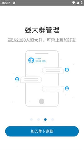 3、 作为一款安全可靠、功能强大的即时通信应用,萝卜聊天App适用于多种场景,特别适合圈子沟通、聊天和办公等领域。