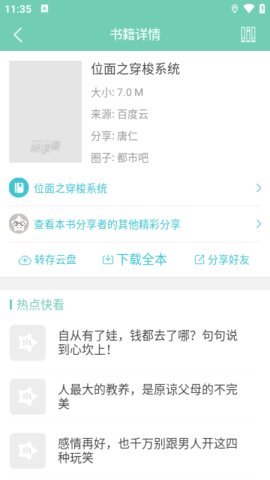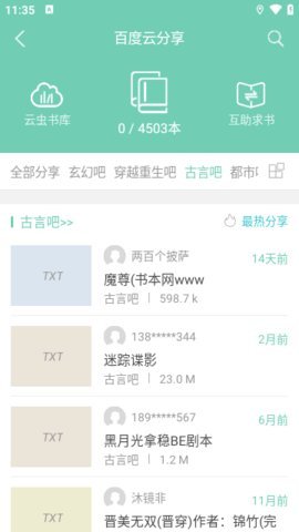 1、它还提供了百度云共享的小说资源,用户可以与书友们共享超过百万本免费小说。