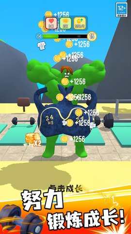 2、玩家只需要不断点击完成在健身房内的锻炼,让角色不断成长强壮。