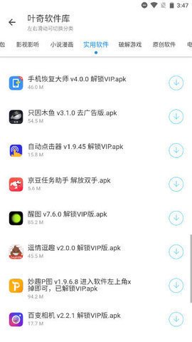 1、 叶奇软件库是一款提供各种资源下载的应用,不仅有丰富的软件资源,还有各类游戏资源和辅助资源。