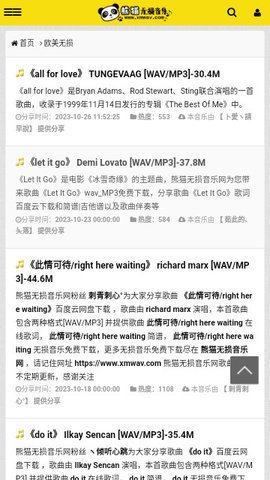 1、 熊猫无损音乐也是一款非常好用的手机听歌软件。