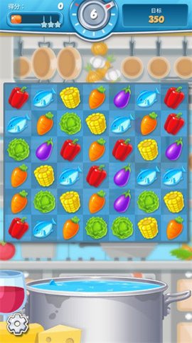3、与传统的消除游戏一样,需要在规定的步数之内,将三种相同的食材连成横排或竖排进行消除。