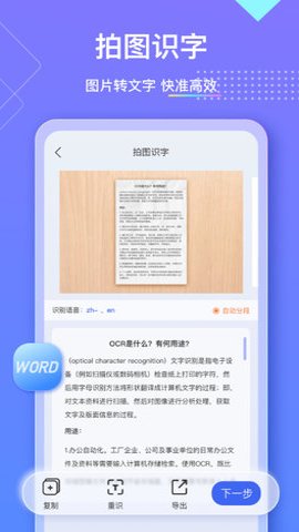 1、这意味着我们可以使用手机拍摄纸质文档,并通过应用进行识别和校对,确保识别的准确性和高效性。