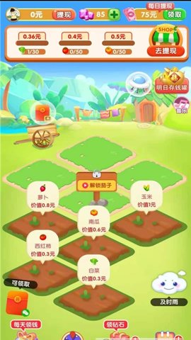 3、这款游戏不仅有经典的种田赚钱玩法,还有种菜休闲玩法,让玩家可以在游戏中体验种植蔬菜、赚取红包奖励的乐趣。