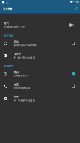 1、通过在屏幕上显示黑色覆盖层,Blackr可以有效地关闭屏幕,节约电量。