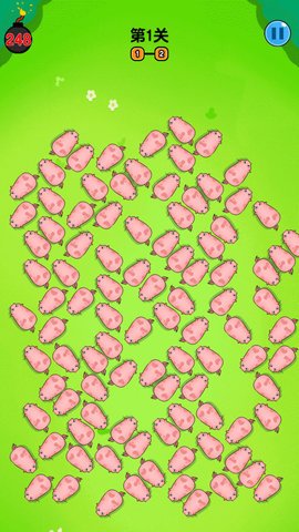 1、游戏的场景设置在绿油油的草坪上,许多动物挤在一起无法自行脱离,玩家需要动动手指,想办法帮助它们解围。