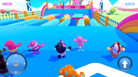 2、这种玩法非常有趣,需要玩家在尽快完成地图挑战的同时也需要注意控制自己的糖豆人,避免被陷阱所伤害。