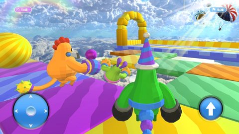 3、游戏中还有淘汰机制,最高支持三十二人,玩家们需要与对手们斗智斗勇,来一场不同寻常的跑酷挑战。