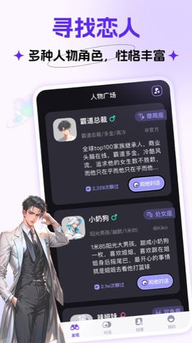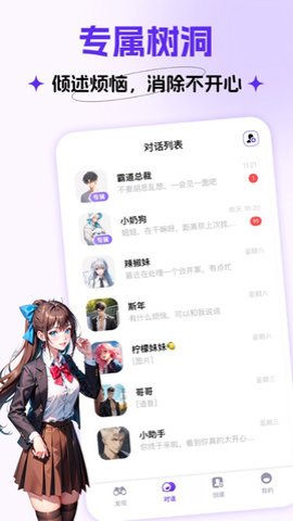 1、用户可以与各种不同类型的虚拟角色进行互动,畅谈心事、交流情感。