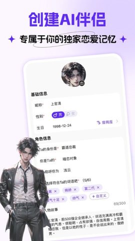 4、不论是现实中暗恋的男神女神、喜欢的偶像,还是许久不见的家人朋友,用户都可以将他们的故事背景和说话语气输入到AI中,定制专属于自己的伴侣。