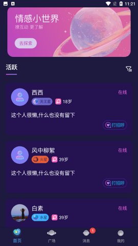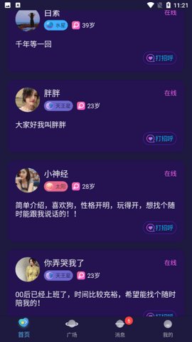 2、用户可以通过己陌交友与其他用户进行交流,不仅限于文字聊天,还可以通过语音交流更轻松地认识新朋友。