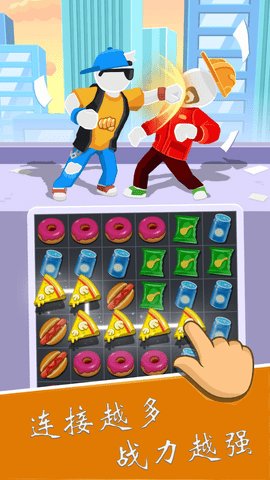 2、角色们在城市中遭遇各种坏人,玩家需要通过一系列的消除模式来攻击敌人。
