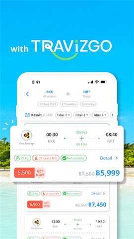 4、 总而言之,travizgoapp是一款易于使用且价格优惠的赴泰旅行应用程序,用户可以轻松预订航班、酒店、住宿、旅游和汽车租赁。