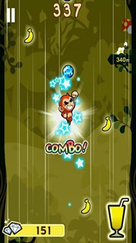 3、沿路收集香蕉,灌满果汁杯,就能在紧要关头使用香蕉跳跃瞬间逃到高处。