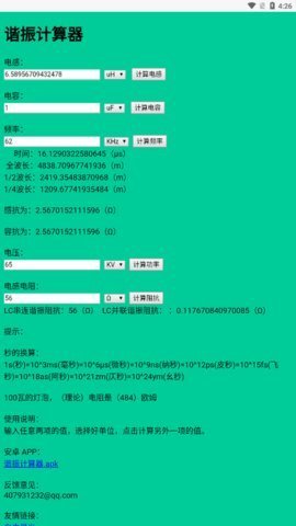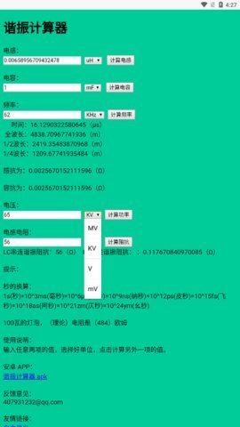 谐振计算器是一款实用工具应用,可以帮助用户进行各种数值计算。无论是在工作中还是学习中,我们经常需要进行电压、电阻、电感等资源的计算,而谐振计算器可以提供全面的计算模式,帮助我们快速准确地得出结果。 这款应用的操作非常简单,用户只需点击单位信息的值,就可以完成转换和计算。
