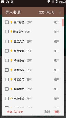 3、如果用户想要导入多个书源,可以点击左下角的全选按钮,然后点击确认即可。