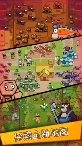 3、玩家需要召集英雄,组合技能武器装备,满地图移动收割怪物,掉落更多极品装备奖励,一起消灭所有BOSS。