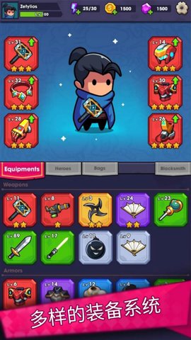 1、玩家可以通过战斗、升级和过关来获得更多的装备。
