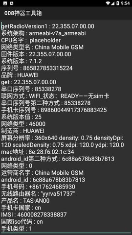 1、 008神器还提供了数据更改功能,支持修改当前手机数据、定位信息、系统信息、位置模拟、安卓系统版本、系统构架、屏幕分辨率、型号、硬件型号、手机运营商等内容。