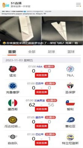 3、 NBA、CBA、英超、欧冠等热门体育比赛都可以在51直播免费版中进行在线观看。