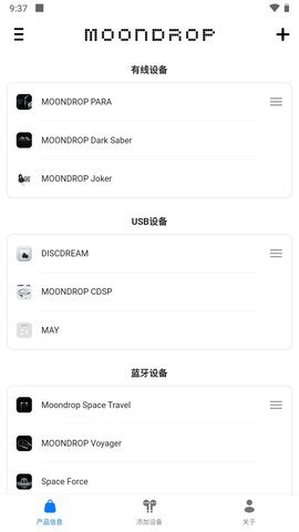 3、moondroplink0是专为水月雨品牌的耳机打造的管理软件,它不仅实现了以上六种调音的一键切换和自定义触控UI,还支持OTA固件更新,提供了产品精细说明书,接入了自助售后/跟踪系统。