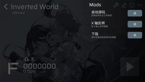 3、 对于导入皮肤的方法,你只需要点击右上角的扳手图标,屏幕右边会显示出三个模组,分别是自动游玩、X轴翻转和下隐。