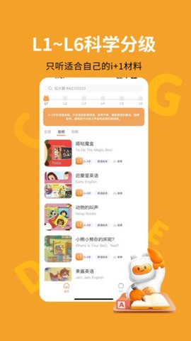 1、 这款app根据孩子的年龄和英语水平进行了分级,从启蒙级到高级,每个阶段都有相应的学习内容。