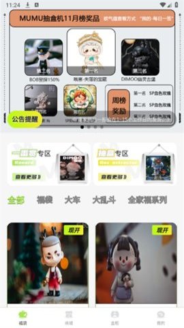 1、 阿木木抽盒机App是一款新上线的潮玩盲盒商城软件,用户可以购买到许多潮玩好货。