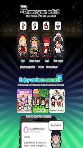 1、 月刊偶像完整版是一款像素偶像经营模拟游戏,游戏的发展充满了不确定性。