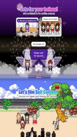 3、作为玩家,你将亲身体验到签约、培训、宣传等各个环节,以帮助你的偶像们成长。